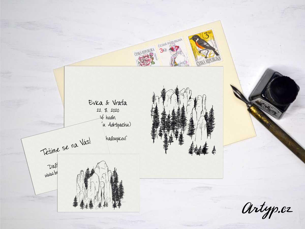 Vytvoříme pro vás osobité svatební oznámení. Nepoužíváme žádné obrázkové banky, všechny ilustrace jsou jedinečné.