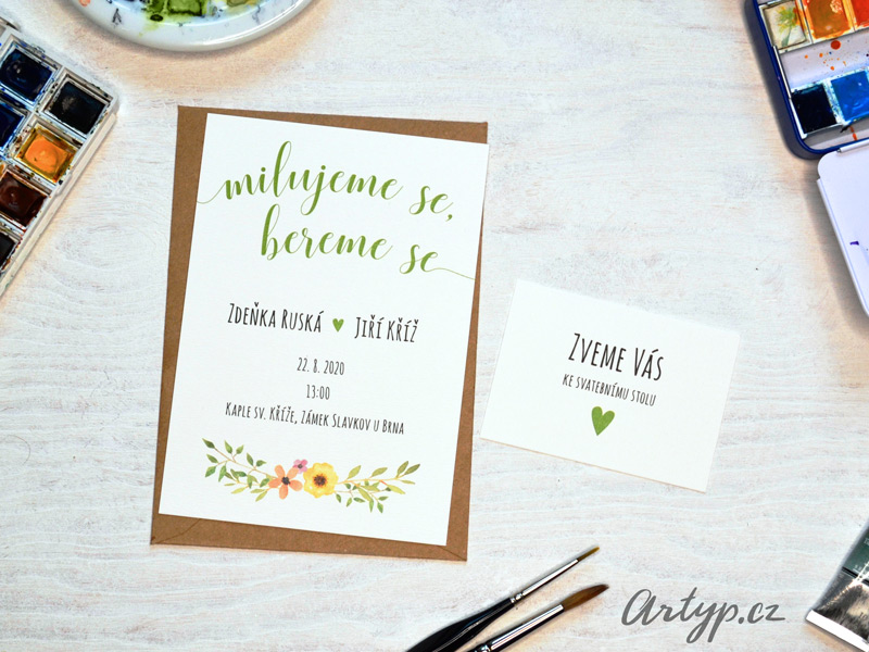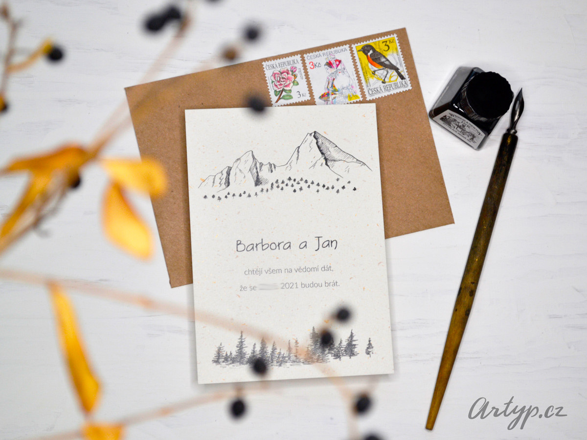 Téměř cokoli. Malované oznámení s květy, portrét snoubenců, čistě typografické oznámení bez ilustrací aj. Vaši zakázku zpracuje Kač, která je autorkou všeho, co na webu Artyp.cz máme. Líbí se vám její styl? Skvěle. Ve stejném duchu bude pracovat i s vaším zadáním.