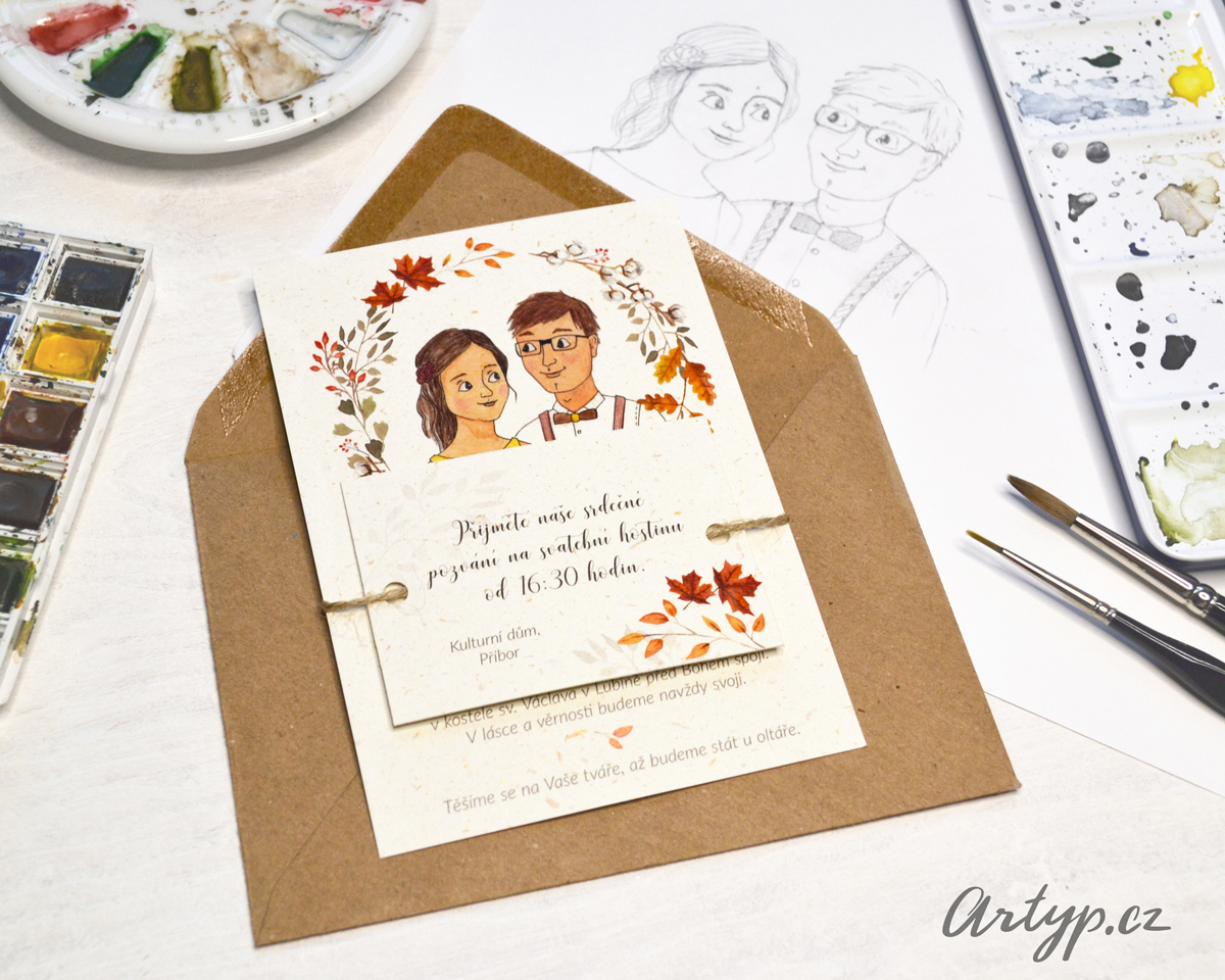 Portrétu snoubenců - svatební oznámení vytvořené na míru