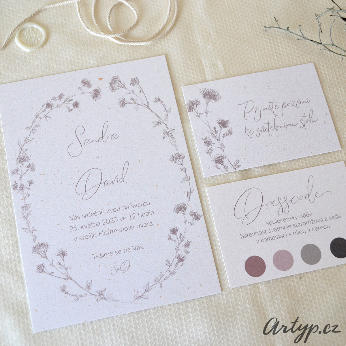 Svatební oznámení s bylinkou Dobromysl