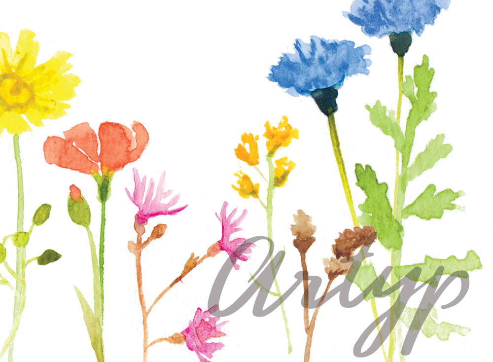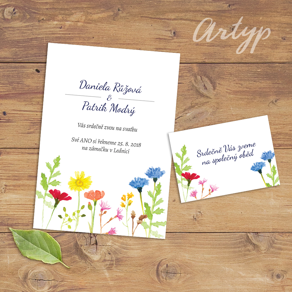 Luční kvítí je „in“ nejen ve svatebních kyticích, ale i na oznámení. Přesvědčte se. Jedná se o autorské ilustrace z naší dílny, ručně malované akvarelem.