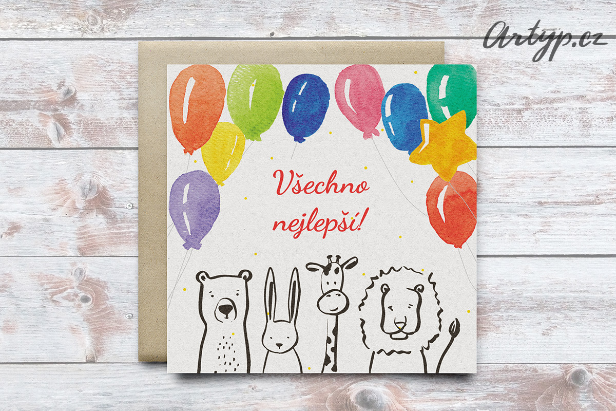 Chystáte se na dětskou oslavu? Připojte k dárku i narozeninové přání s malovanými balónky a zvířátky. Radost udělá dětem i hravým dospělákům.