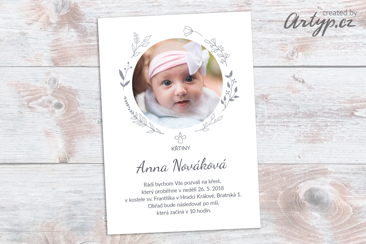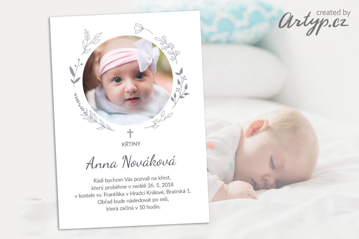 Hlavní hvězdou křtin je vaše dítě. S jeho fotografií bude pozvánka jedinečná a osobní.