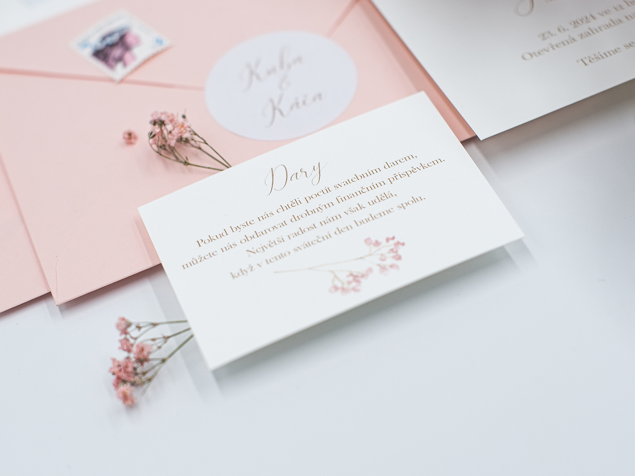 Malé kartičky na doplnění dalších informací např. o svatebních darech nebo dresscodu. Oboustranný tisk je za příplatek 8 Kč.