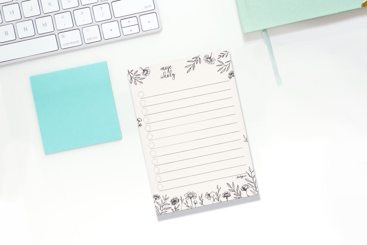 Co je na papíře, nemusíte nosit v hlavě. Úkoly, aktivity nebo nákupní seznam si poznamenáte do originálního bloku s autorskou ilustrací.