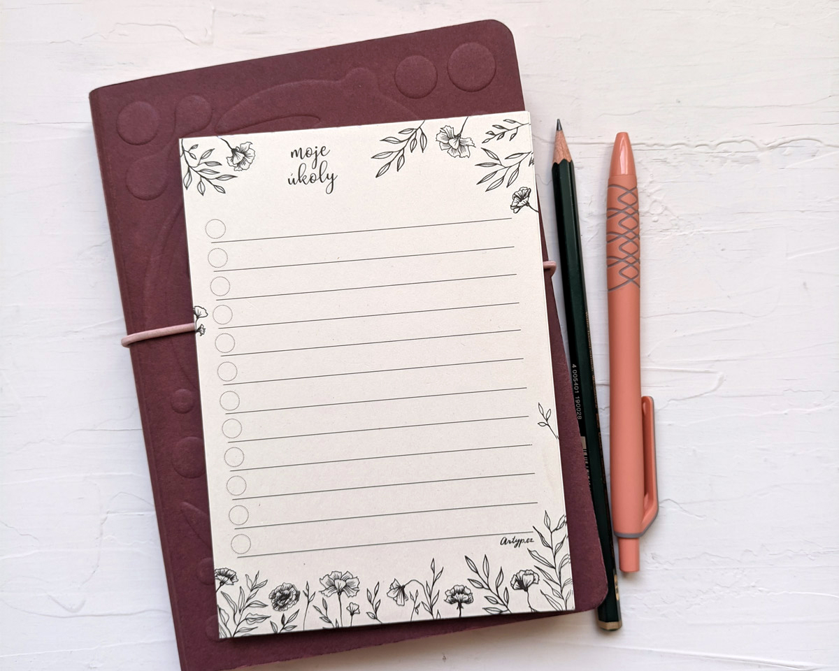 Co je na papíře, nemusíte nosit v hlavě. Úkoly, aktivity nebo nákupní seznam si poznamenáte do originálního bloku s autorskou ilustrací.