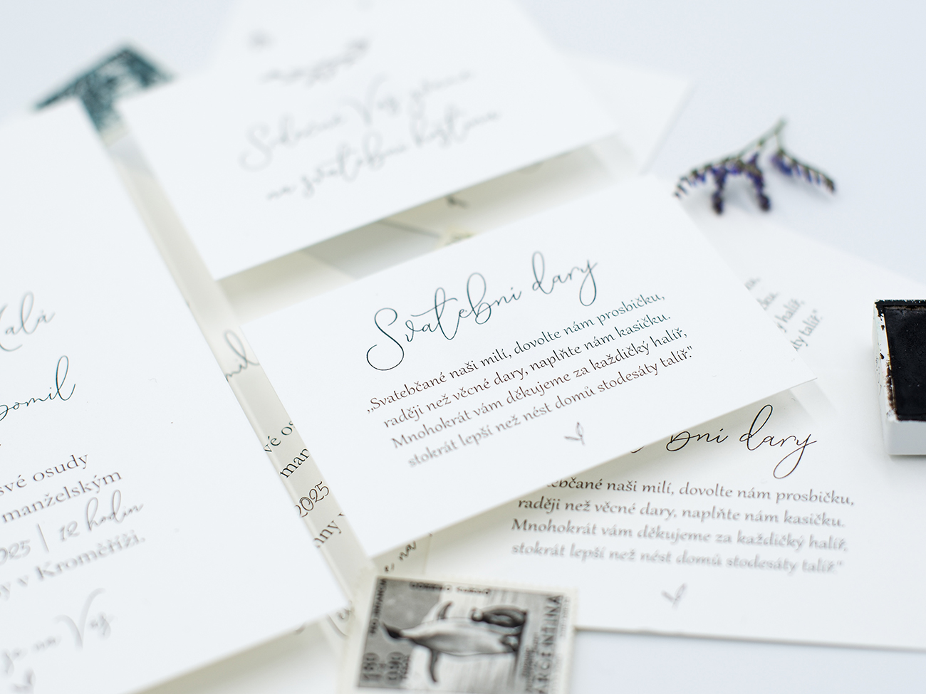 Malé kartičky na doplnění dalších informací např. o svatebních darech nebo dresscodu. Oboustranný tisk je za příplatek 4 Kč.