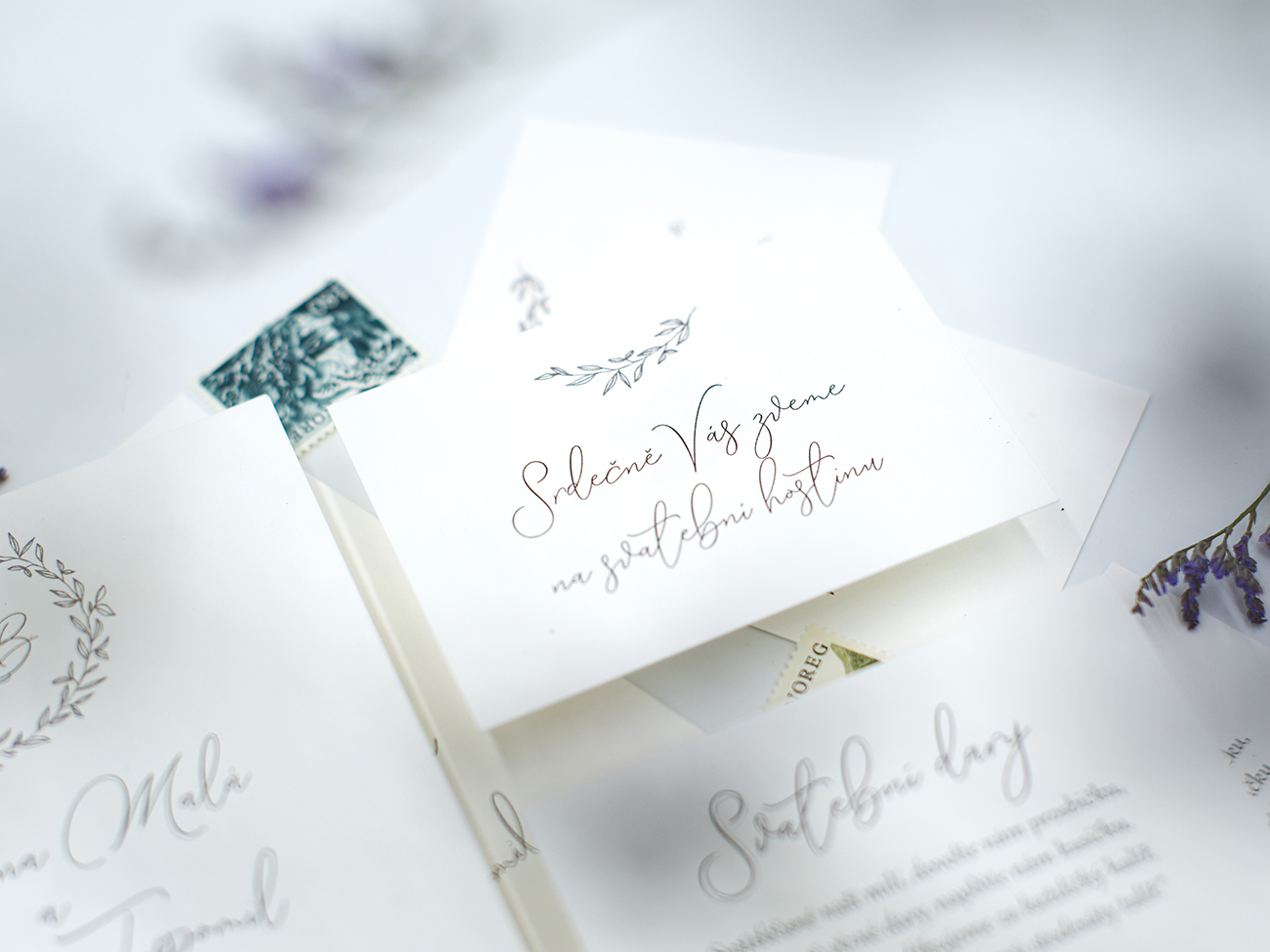 Svatební oznámení s průhledným přebalem