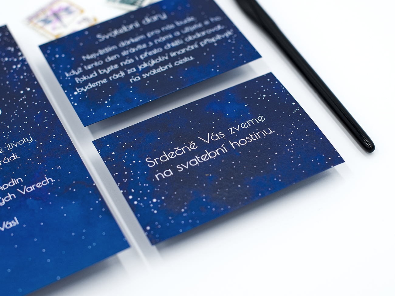 Malé kartičky na doplnění dalších informací např. o svatebních darech nebo dresscodu. Oboustranný tisk je za příplatek 8 Kč.