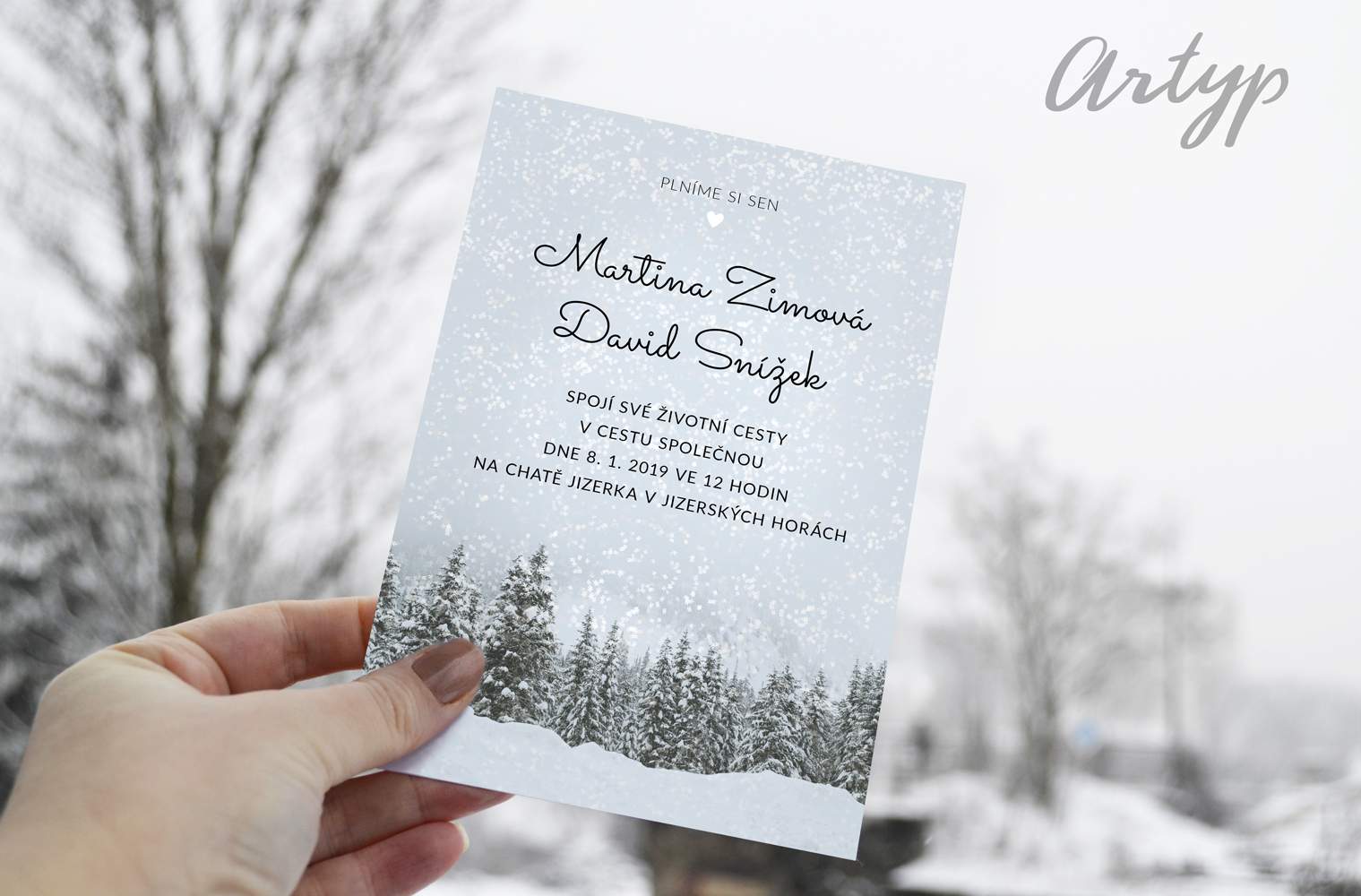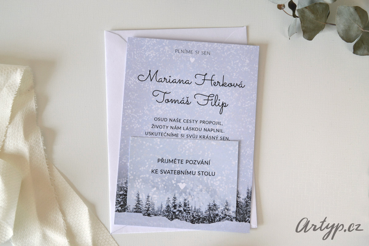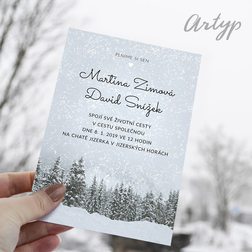 Zimní zasněžené pozvánky na svatbu